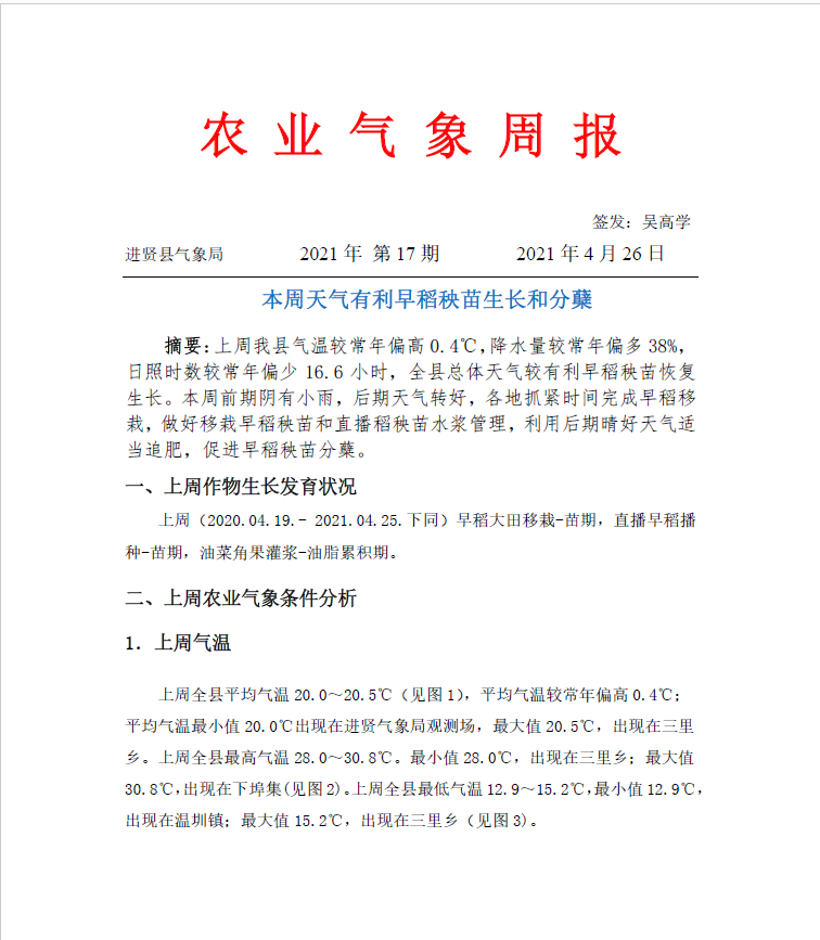 上海沪举信息技术有限公司承担了上述气象局气象为农服务业务。根据省、市气象局对气象为农服务工作要求和考核指标,以及当地气象为农服务特色的需求,通过实时监测和预报,编制各类气象为农服务材料并在规定的路径发布;参与市局重大天气过程会商;灾情、农情、田间调查工作;参与农业两部门“六联合”业务化以及联合调查、联合会商、联合制作产品。精细化农业气候区划和农业气象灾害风险区划成果应用等。